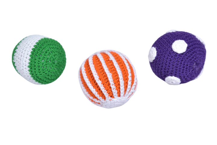 Suspend it from a baby playgym, and this can be used as a tactile mobile too encouraging the child to experience the tactile world around them while honing their motor skills, concentration, and hand-eye coordination.